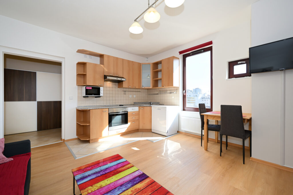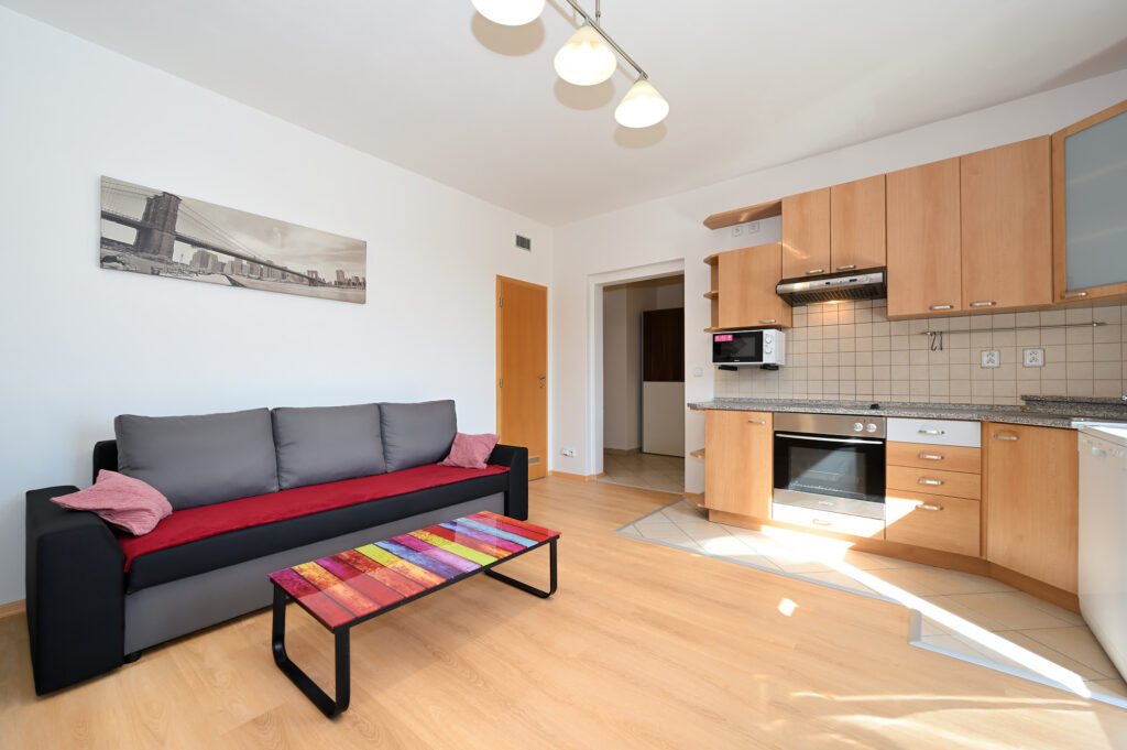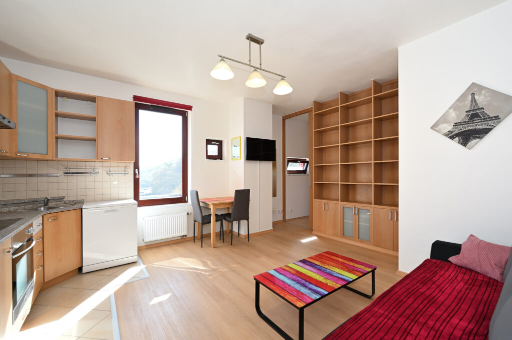 PRONAJATO – Byt 2+kk, 43 m², kompletně a moderně zařízený, v zánovním domě z roku 2007 s výtahem, ul. Pod Klamovkou, Praha 5 – Košíře