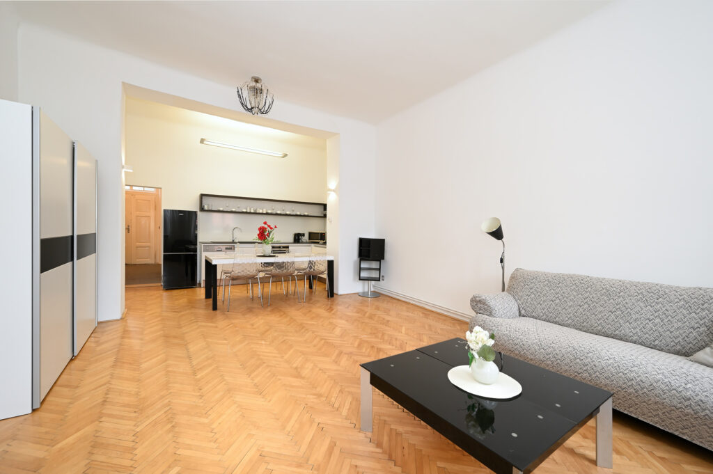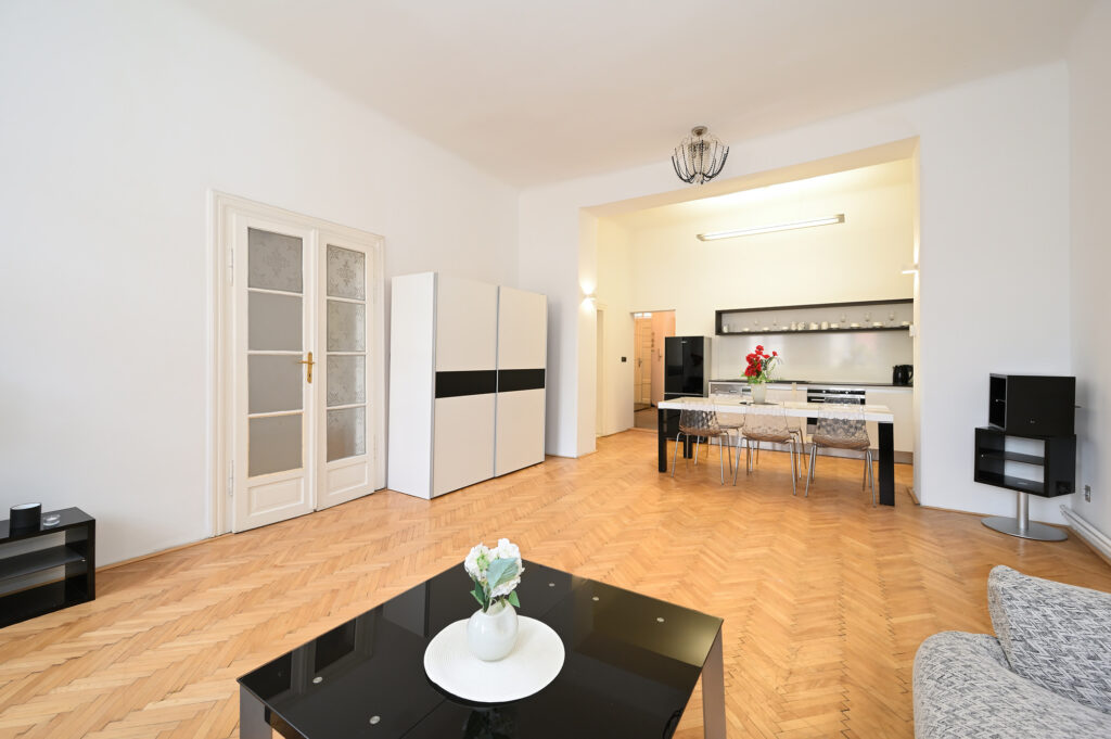 Nabízím vám k dlouhodobému pronájmu prostorný a částečně zařízený byt 4+kk o velikosti cca 100m2 ve velmi lukrativní a žádané části Prahy – Starého Města v ulici Karoliny Světlé/Smetanovo nábřeží, jen pár kroků od Karlova mostu a Národního divadla.