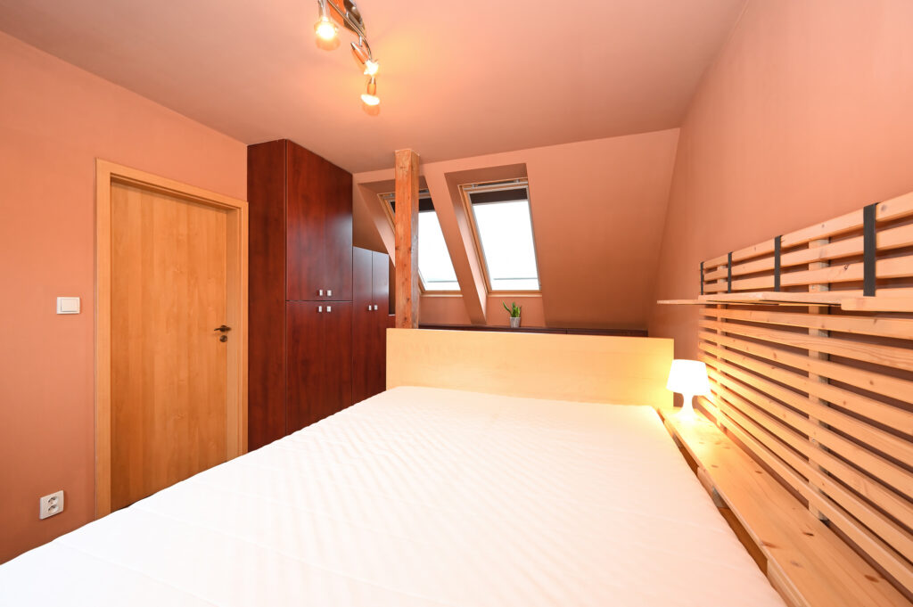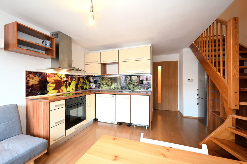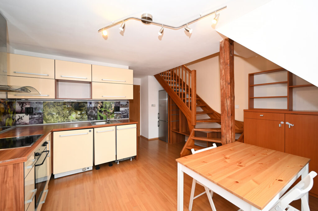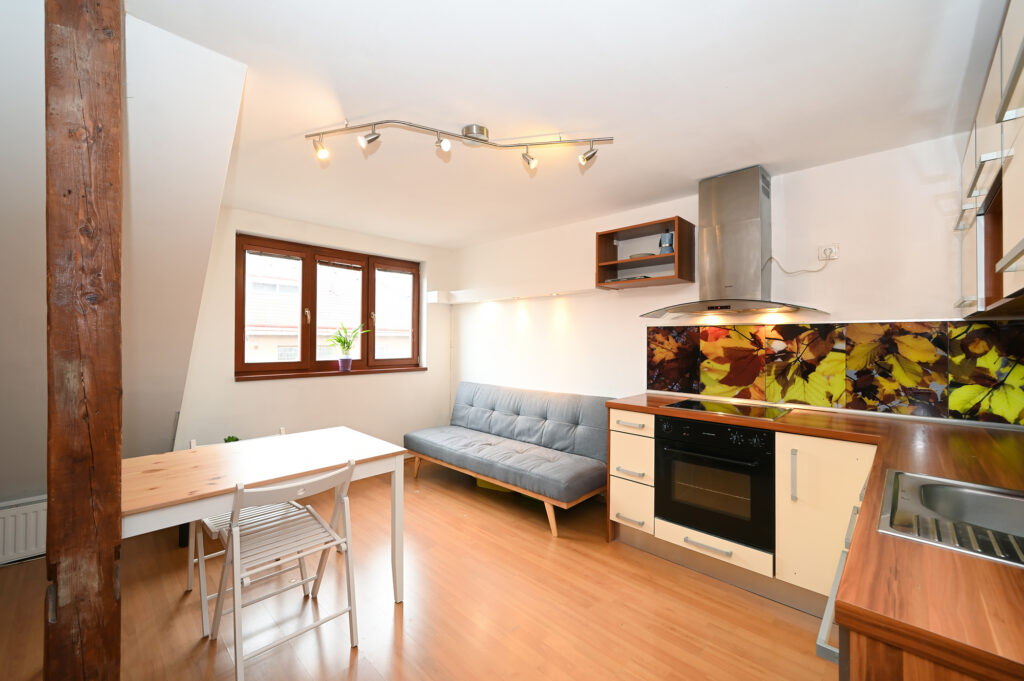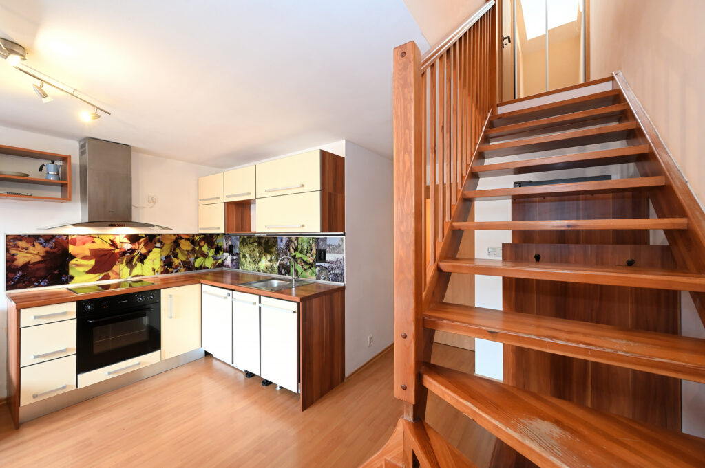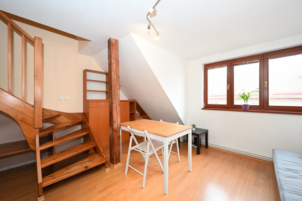 PRONAJATO – Mezonetový půdní byt 2+kk, 43 m², kompletně zařízený, v atraktivní lokalitě, ul. Pivovarnická, Praha 8 – Libeň