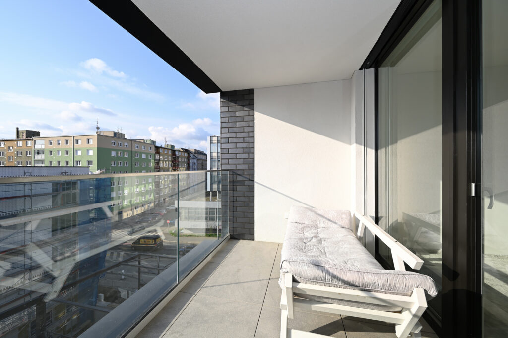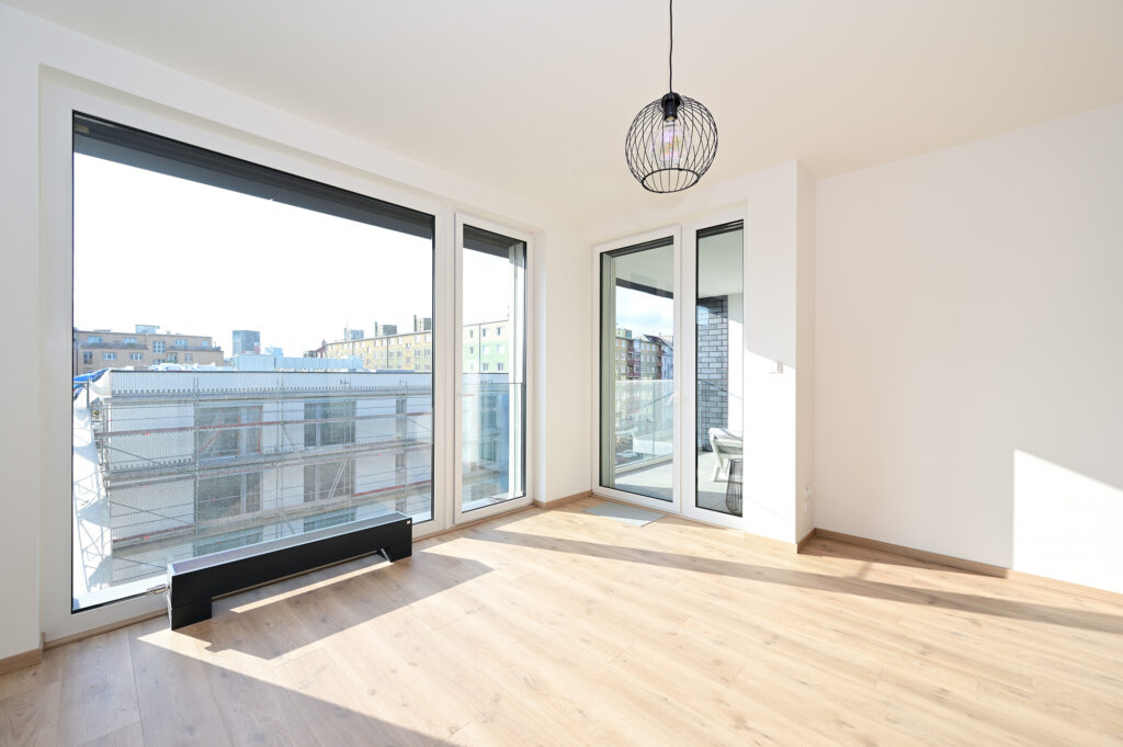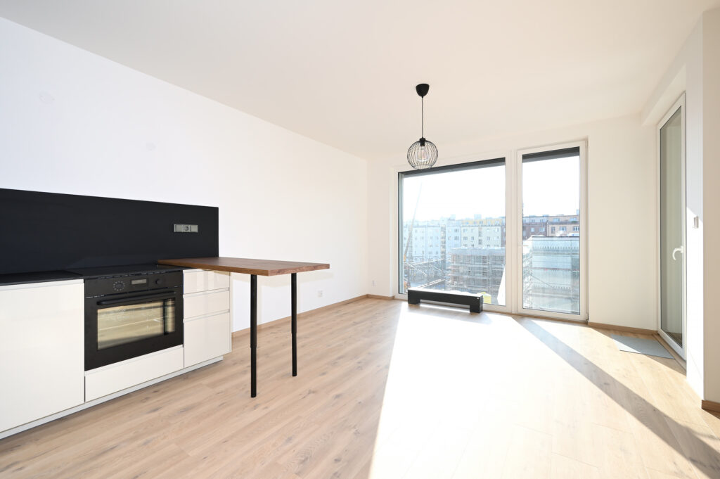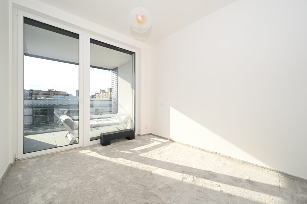 PRONAJATO – Nový a moderní byt v rezidenčním projektu Pergamenka, 2+kk, 54 m² s menší pracovnou nebo šatnou, lodžie 5 m², 1 garážové stání, ul. Jankovcova, Praha 7 - Holešovice