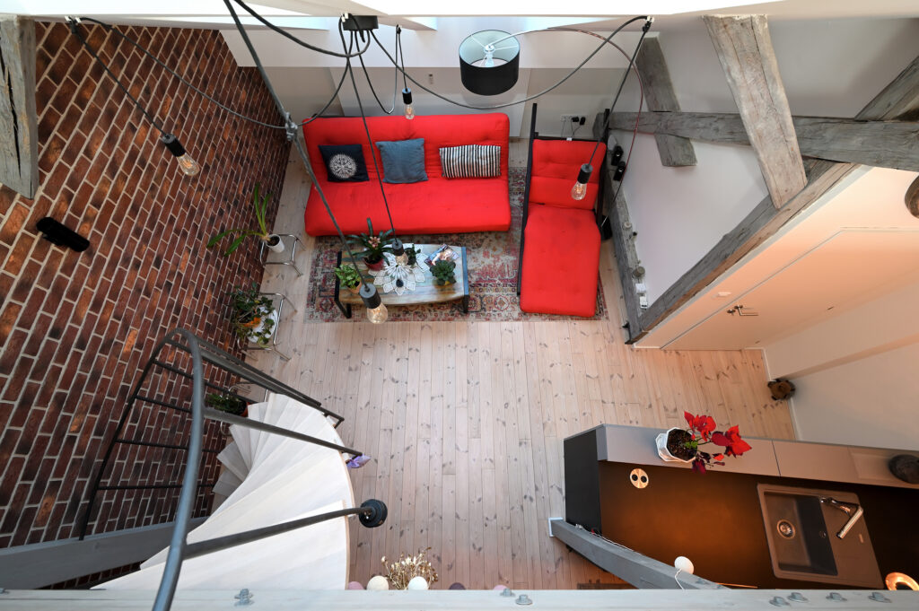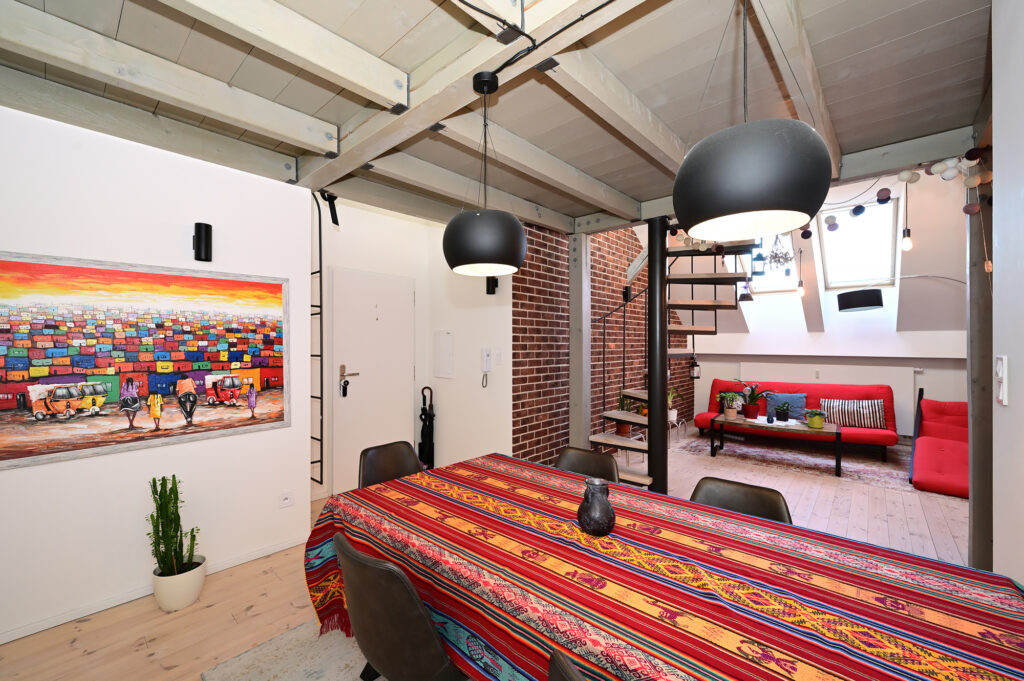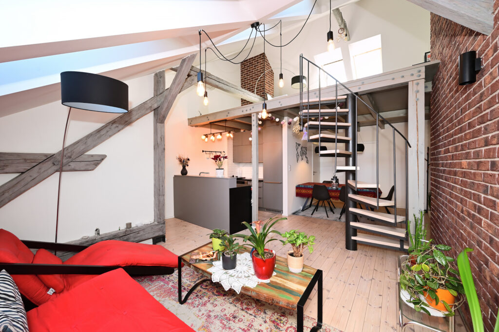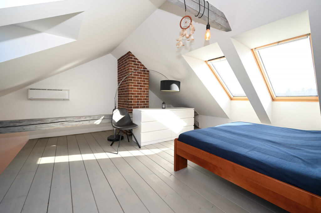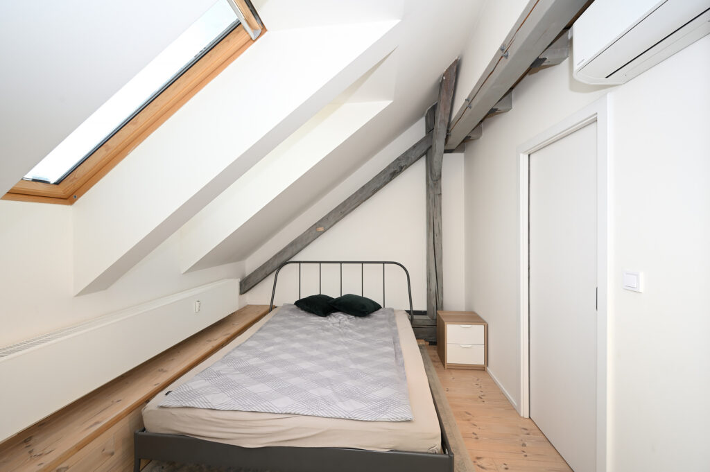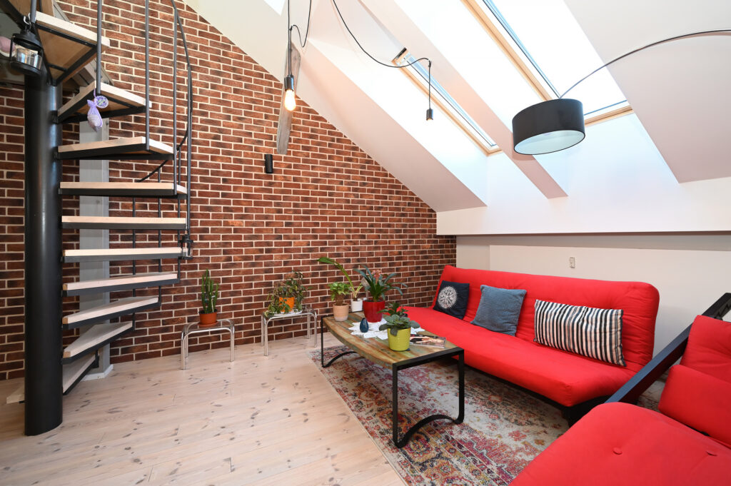 PRONAJATO – Mezonetový půdní byt 3+kk s pracovnou, 80 m², kompletně zařízený, venkovní parkovací stání ve dvoře domu, ul. Zenklova, Praha 8 – Libeň