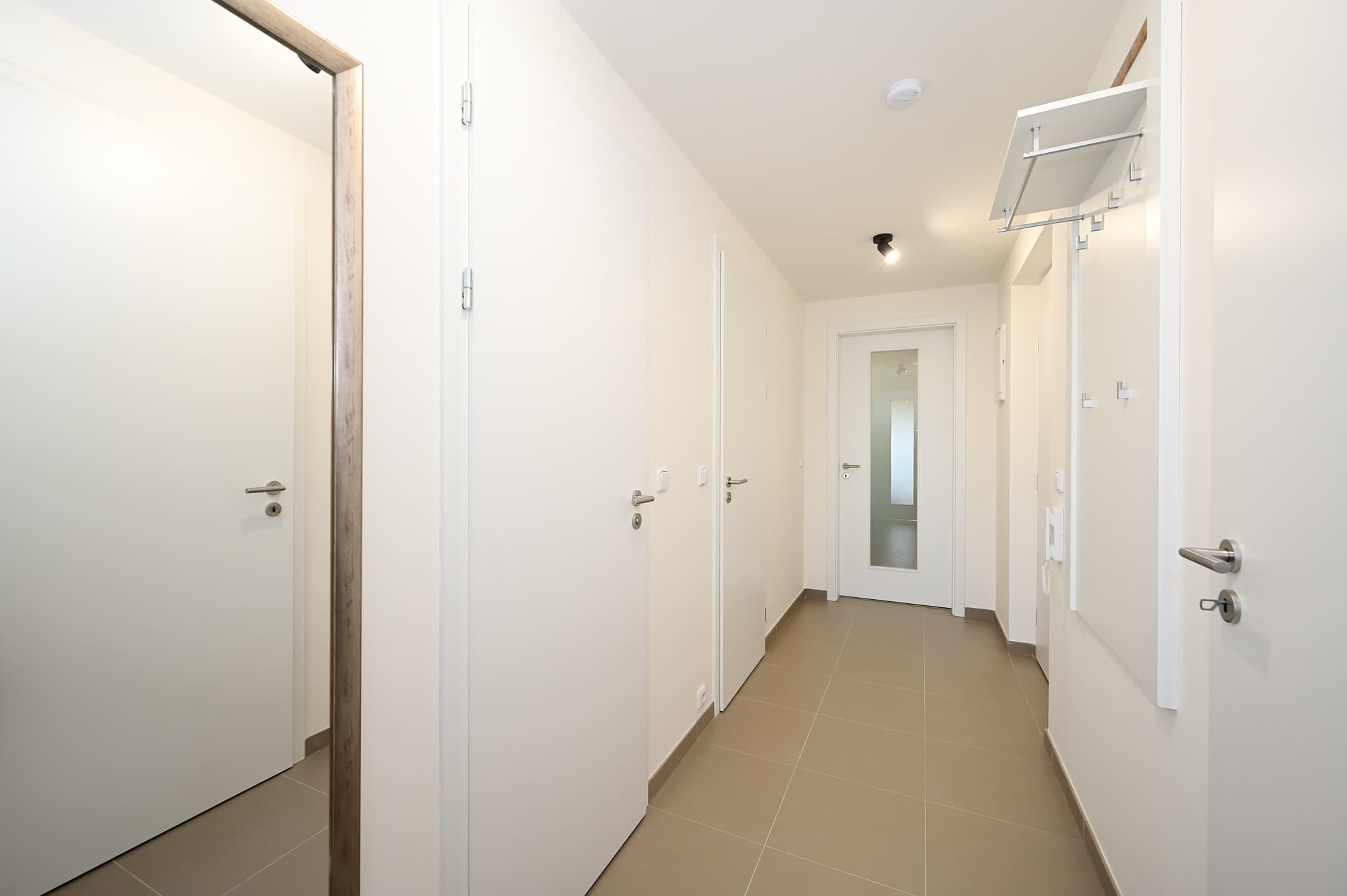 Bytová jednotka disponuje vlastní zahradou o rozloze (183 m2), která je přístupná jak z obývacího pokoje, tak i z ložnice. Samotný byt zahrnuje chodbu (6,12 m2), komoru (3,03 m2), koupelnu s vanou (4,37 m2), samostatnou toaletu (1,4 m2), ložnici (12,84 m2) a obývací pokoj s kuchyňským koutem (28,4 m2). Součástí bytu je také sklep (1,9 m2). Orientace bytu je na jihozápadní stranu.