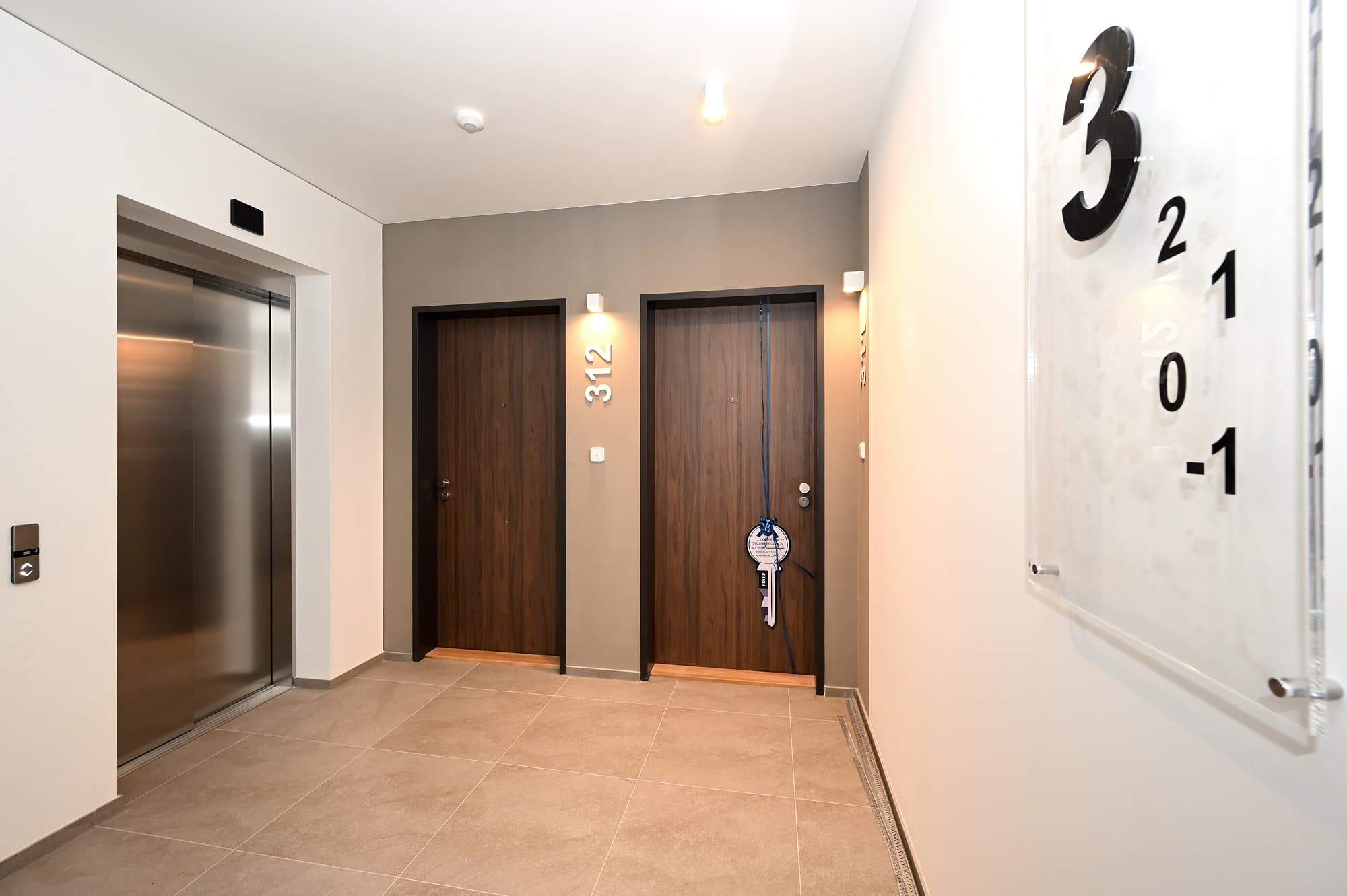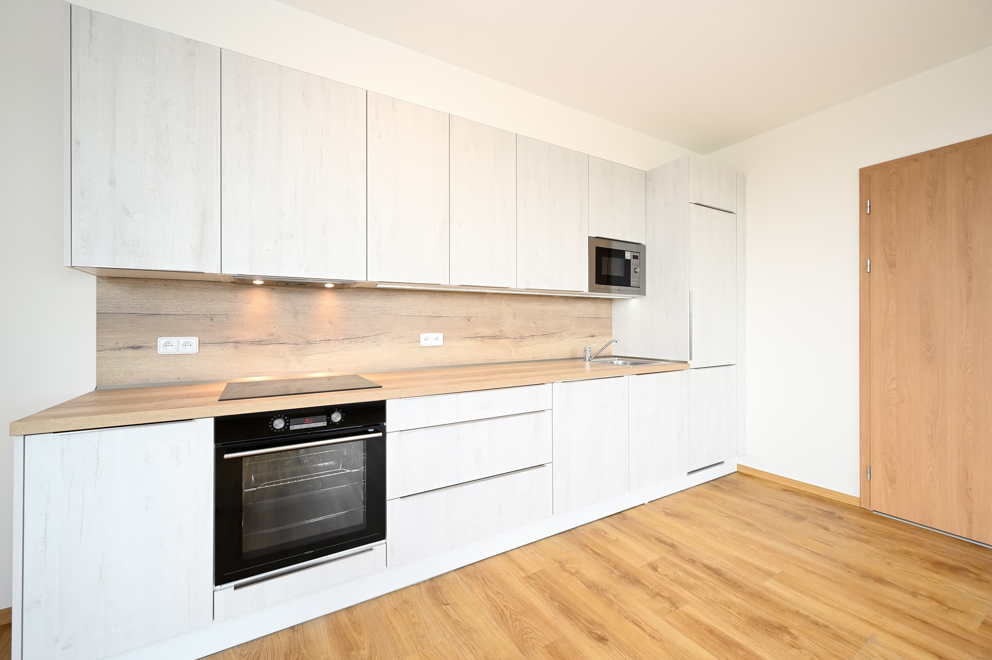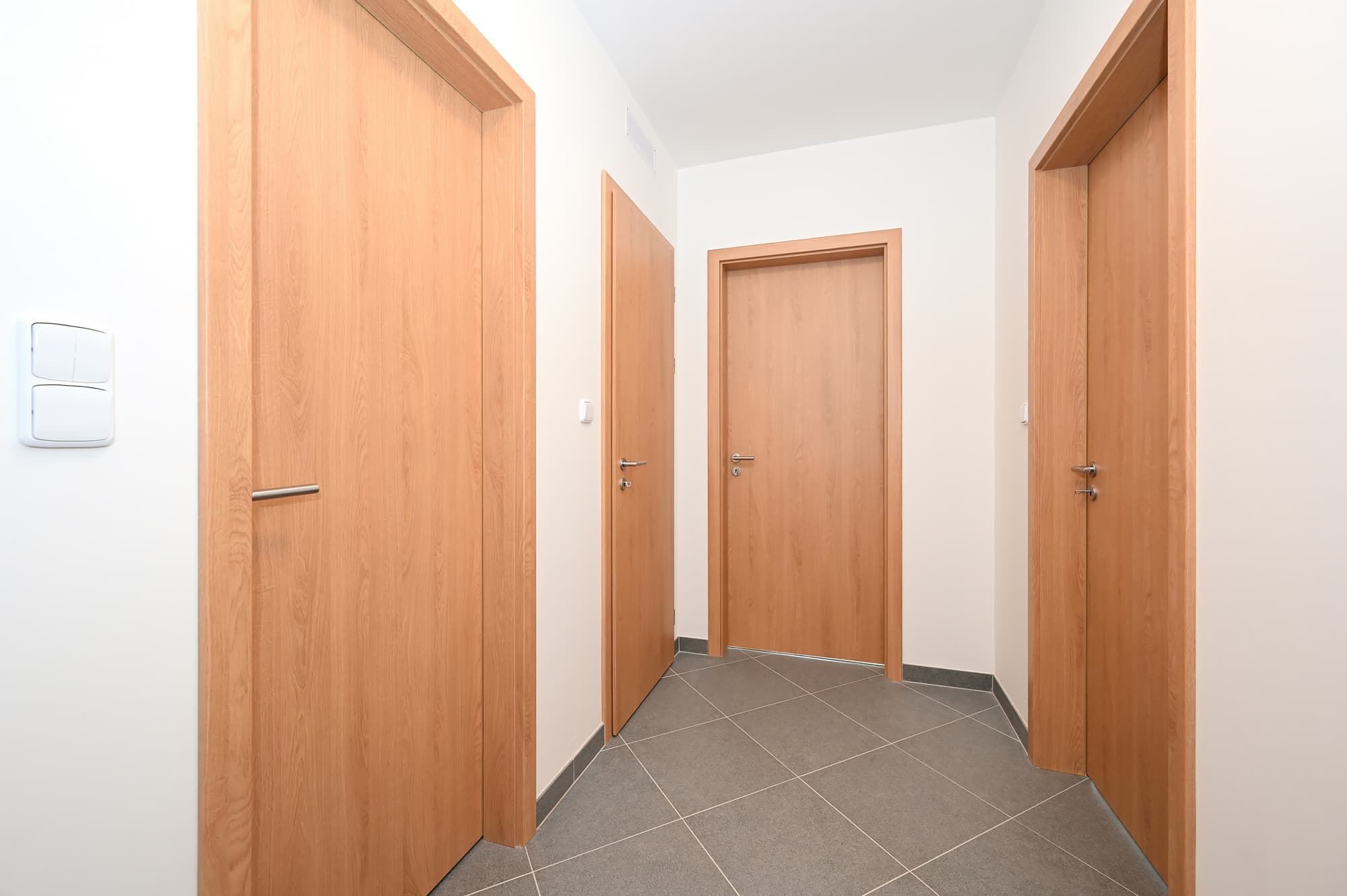 Byt se skládá z vstupní chodby (6,2 m2), komory (2,4 m2), koupelny s vanou a toaletou (5,8 m2), ložnice (14,7 m2), obývacího pokoje s kuchyňským koutem (24,2 m2) a přístupem na lodžii (6,1 m2). Kuchyně je vybavena novými a kvalitními spotřebiči, jako jsou elektrická trouba, varná deska, digestoř, myčka a vestavěná lednice s mrazákem. K bytu náleží sklep v suterénu domu (4,2 m2). Byt nabízí mnoho nadstandardních prvků, jako jsou podlahy, velká okna a elektrické rolety. Orientace bytu na jihovýchod zajistí po celý den dostatek světla.