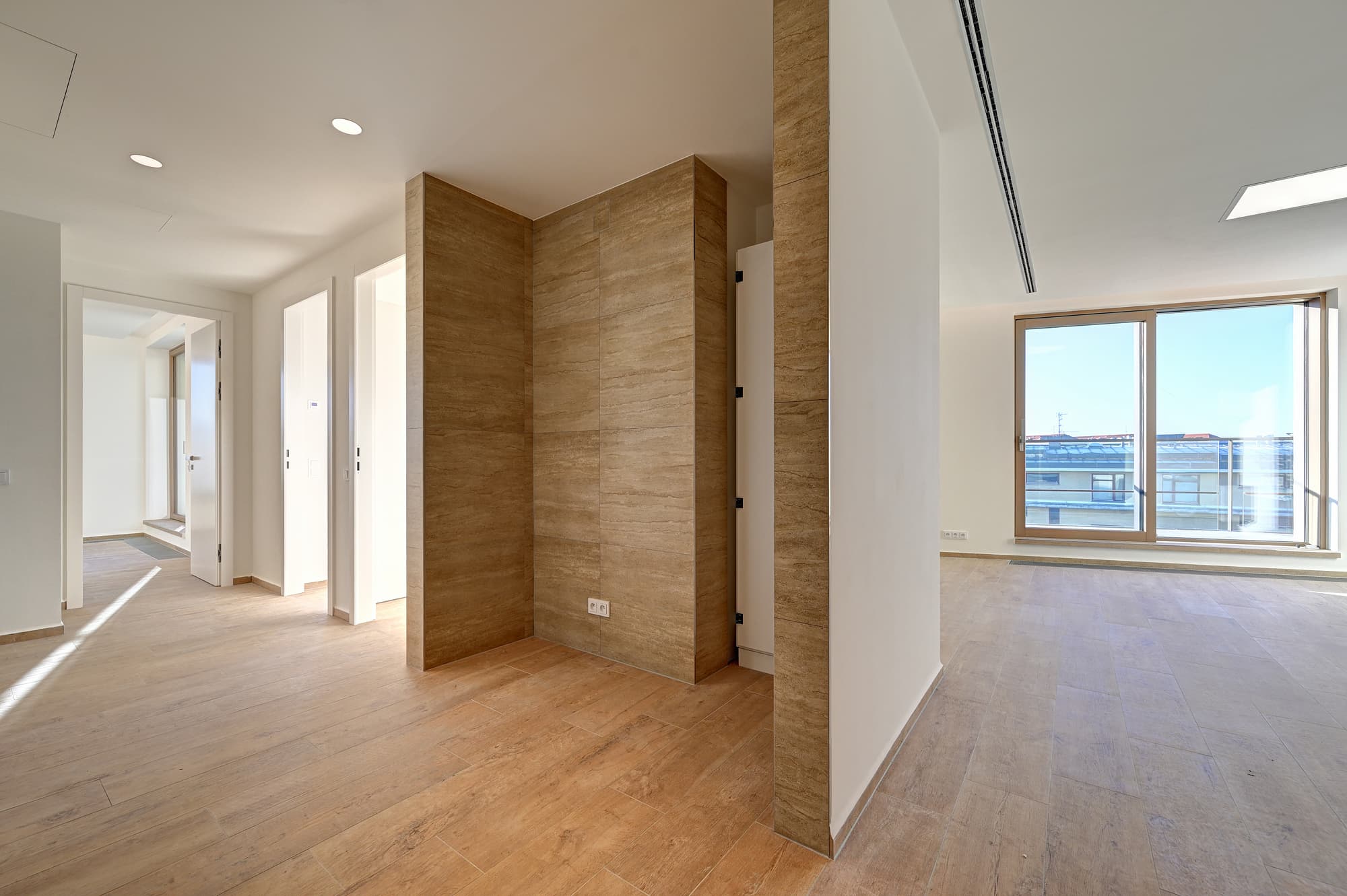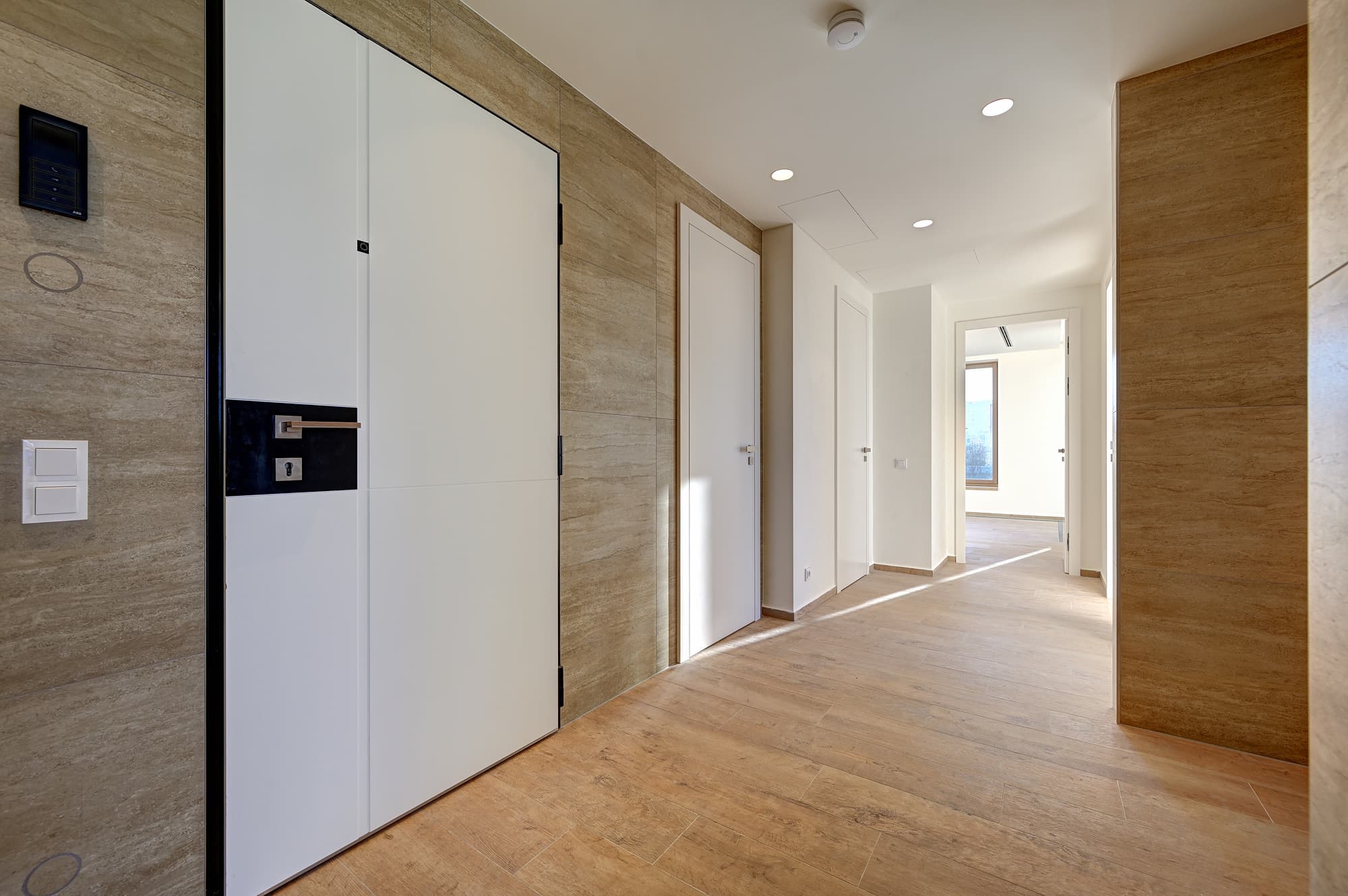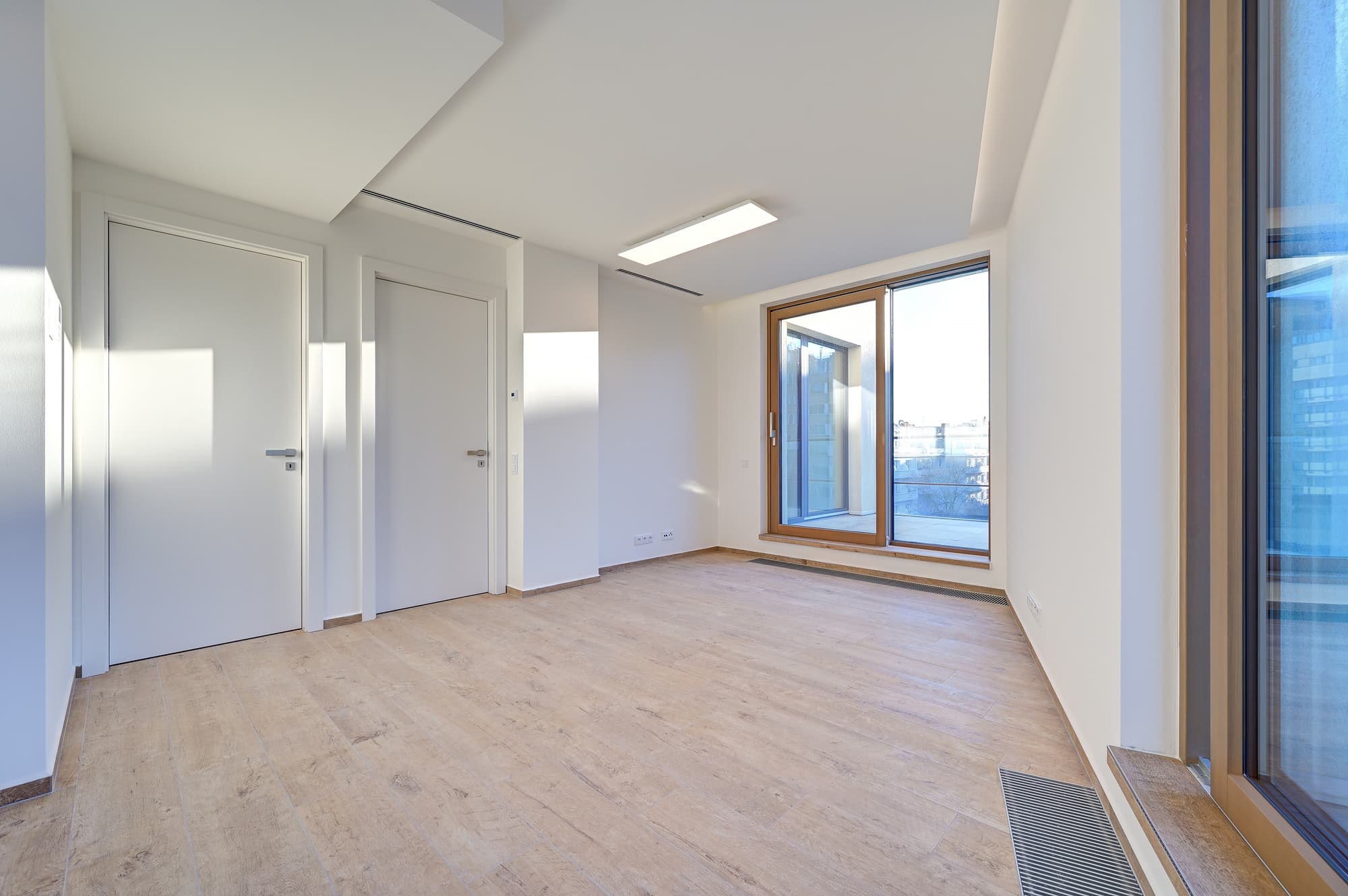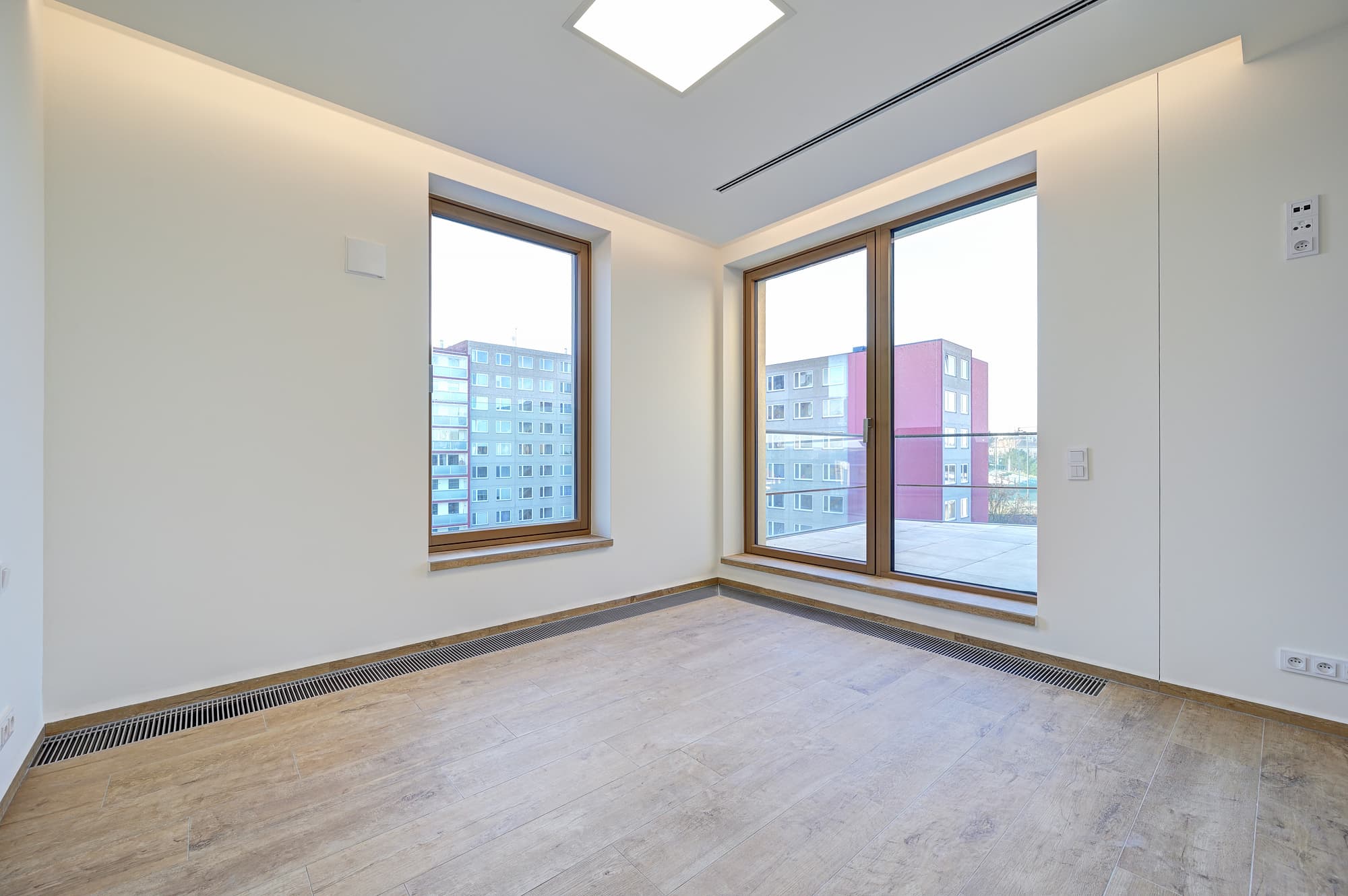Pohodlí a komfort bydlení zajistí velká dřevohliníková okna s nižšími parapety, vstupní dveře v provedení odolném vůči požáru s bezpečnostním kováním a vícebodovým zamykáním a mnoho dalších pohodlných doplňků. Celý byt je vybaven centrální klimatizací značky Mitsubishi.