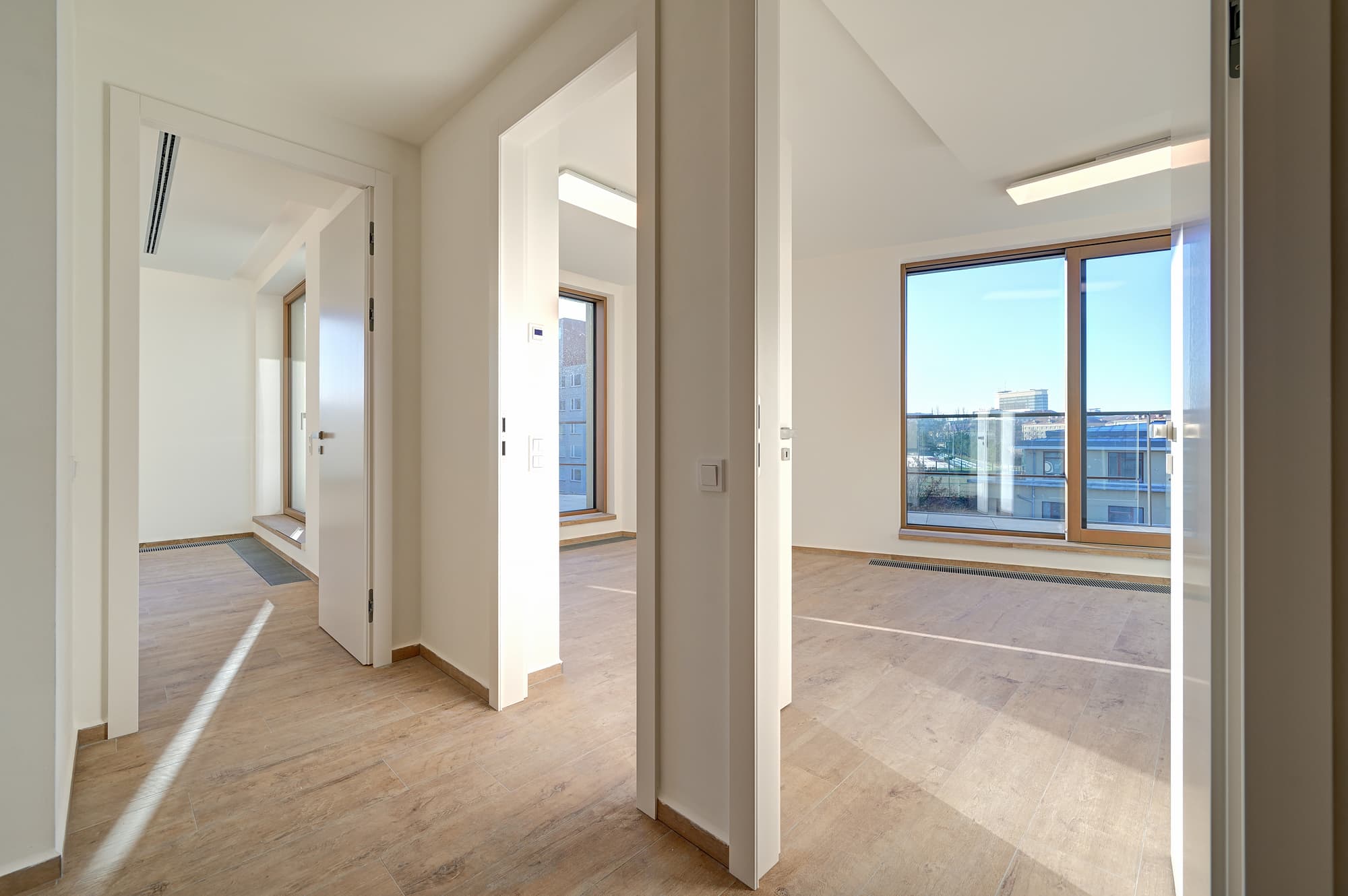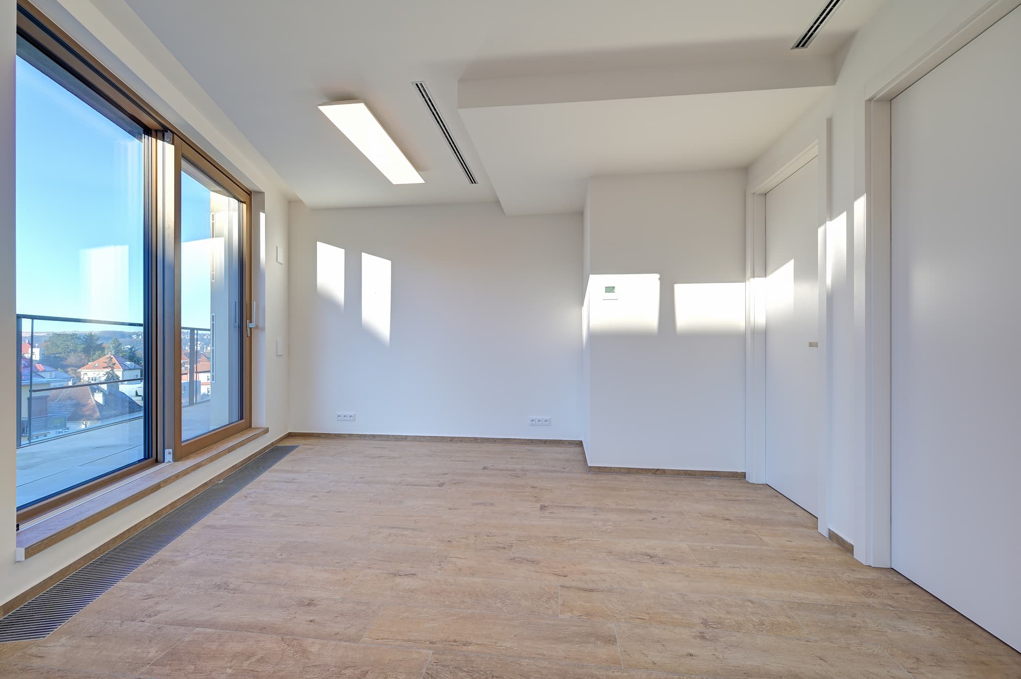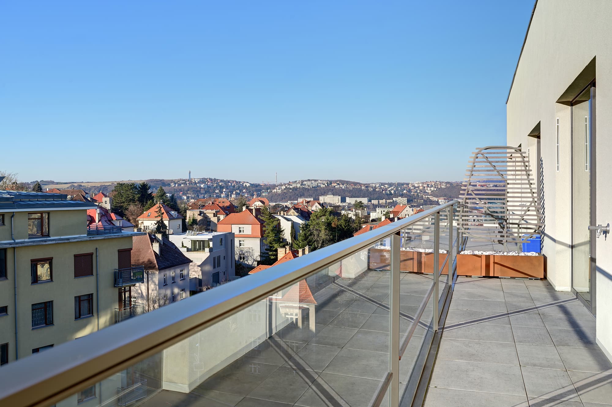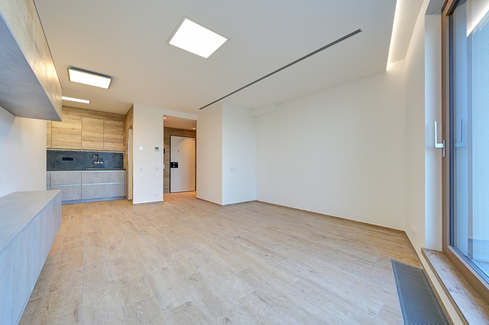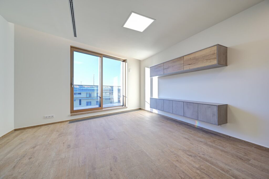 Pohodlí a komfort bydlení zajistí velká dřevohliníková okna s nižšími parapety, vstupní dveře v provedení odolném vůči požáru s bezpečnostním kováním a vícebodovým zamykáním a mnoho dalších pohodlných doplňků. Celý byt je vybaven centrální klimatizací značky Mitsubishi.