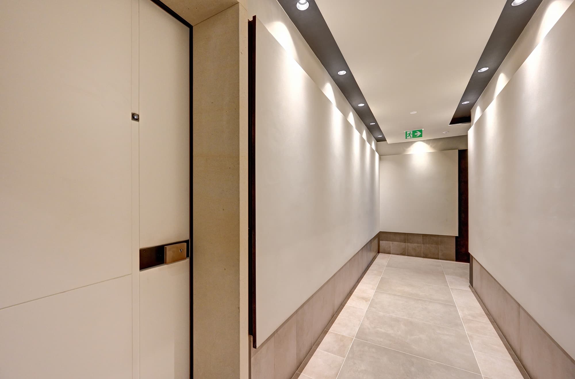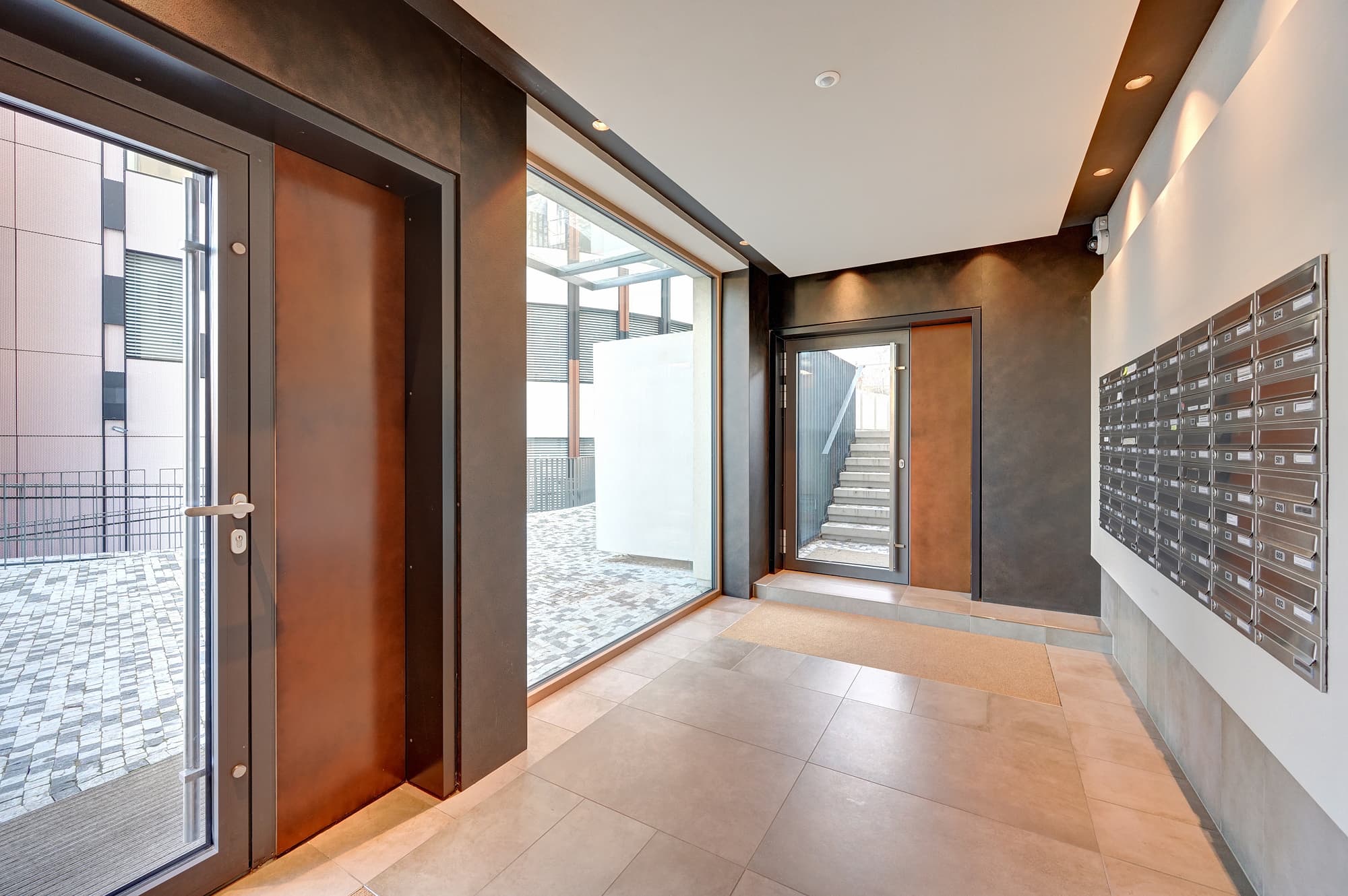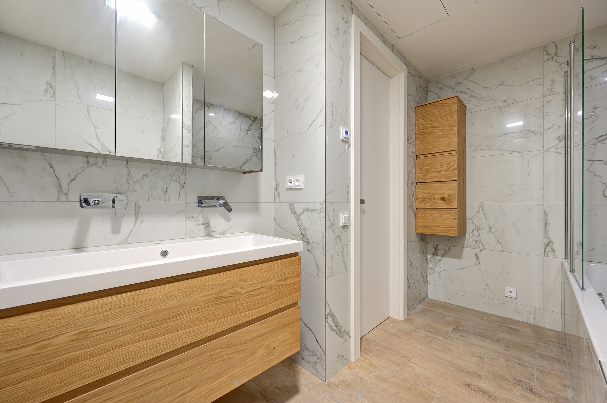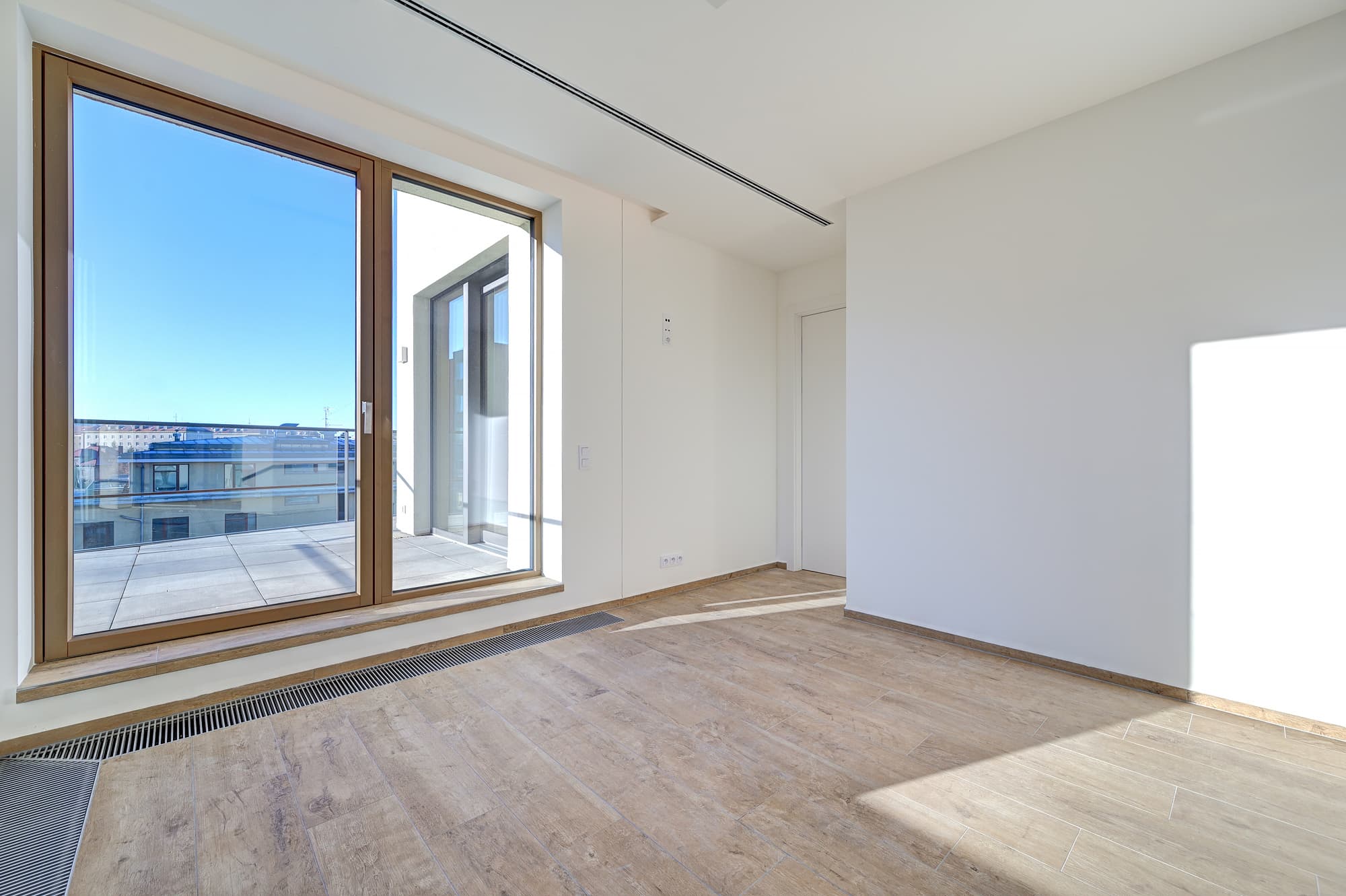 Pohodlí a komfort bydlení zajistí velká dřevohliníková okna s nižšími parapety, vstupní dveře v provedení odolném vůči požáru s bezpečnostním kováním a vícebodovým zamykáním a mnoho dalších pohodlných doplňků. Celý byt je vybaven centrální klimatizací značky Mitsubishi.